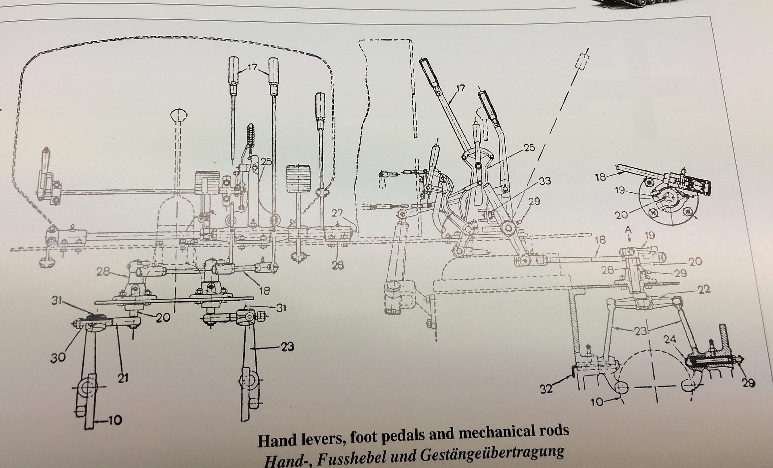 In the driver's area, all those hand and foot controls could be replaced. Again a pair of reference diagrams are provided above.