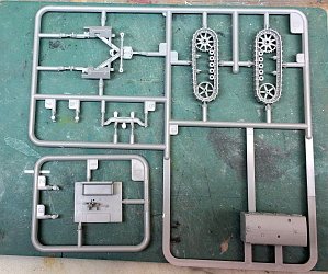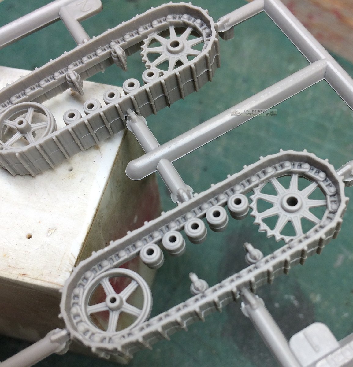 Another simple kit but with more parts than the Komintern. The tracks are molded with all wheels attached, nothing to be added. The tracks are very accurate Caterpillar