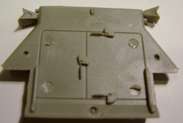 There are 67 parts to be used, with eight LAV hubs, one wire cutter and a jerry can for the parts bin. No detail is present underneath the top hatches, but the rear doors do have latches on the inside. Alas, any cutting of the doors would damage the detail. The eight tires are rubber. I found only a few sink marks that may be visible; 2 on the crane and one on a piece that is mounted above the rear doors.