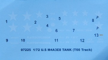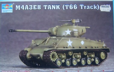 The fourth Sherman and finally a HVSS version although this has the T66 track and so can only be used for the WWII period. As with other trumpeter releases it includes a set of Easy suspension although with this kit you do not get two full sets and you will need to buy two kits to get three sets of suspension, although this will mean using the easy option on two of the vehicles. As with the other Sherman's the kit is not as refined as Dragons but it is certainly usable and at the moment it is the only viable HVSS suspensioned Sherman in Plastic. The suspension is correct in size and although slightly simplified in some areas, it is perfectly usable. The lower hull is the same as used on the M4A3 75mm kit and has the same fit problems if care is not taken when affixing the two parts. The hull is the same as the A3 but has the hull extensions to cover the wider track moulded on, this means that the supports for these are solid and not bars like they should be. The rear hull around the exhausts differ in build than on the A3 kit. The kit has the correct turret for the type with the oval loader hatch and a choice of barrels with or without muzzle brake although the barrel with muzzle brake seems slightly short when compared to the Dragon barrel. Also included are the optional .50 and .30 cal weapons, although the .30 suffers from the same ammo box as the A3 kit mainly it is lying when it should be standing. The suspension. The suspension is correct in size according to the dimensions given in Dougs Article Sherman HVSS The easy suspension with the front wheels fitted, the rear wheels have to be added hence the need for two kits for a third set. The kit has the T66 tracks, these have fine detail and are very thin and fragile so that care needs to be taken when gluing and fixing them so they do not snap (like one set of mine has done) As with all Trumpeter kits only one scheme is shown in the instructions but the decal sheet includes more, including "Flatfootfloogie" there was a debate about the name a while ago, about whether it was floogie or floozie? as the only picture that I have seen of it the end of the name is covered by dust it is hard to make out what it should be, the debate ended with a 50/50 split and no definitive answer. My personal opinion is that it should be Floogie as this was a dance at the time. A nice kit that measures out to 1/72, easier to build than the Dragon kits but also missing the refinements of the Dragon kits, still nothing that can't be rectified. References M4 Sherman in Action Squadron/Signal Armour No 16 |