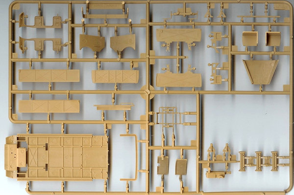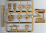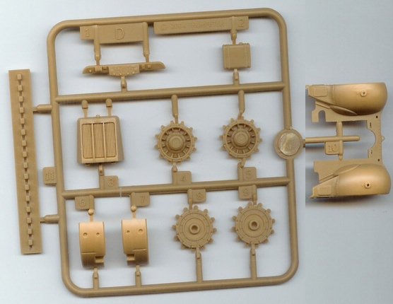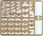 The other main difference is the first version only has the earlier and larger mudguards. The suspension is spread out over three different sprues with the main chassis frame on sprue A. The rear axial beams on sprue B & C, with the wheel swing arms on sprue B. On the newer versions all this is moulded as one piece. But the advantage of this earlier type is the chassis also has locator holes on the outer sides too, for independent wheel axles so you can articulate the suspension to look like the tracks are moving over uneven ground, but the arm movement is very limited so the height extension is quite small. Warning: Some earlier instructions may mislead the builder with the triangular part on the front axle, there are 2 pips & notches to line up by the front brakes. Lastly there is just one choice of track: As the 2-piece Link tracks are moulded in black plastic and all individual links (they do not have pre-mould lengths of track to help you), it is a very monotonous to build especially as once you have cleaned up & glued the links you have to start again with adding all the rubber pads to each link. The one saving grace is there is a plastic rail bracket/rig also supplied to help you line up your tracks before adding them to your wheels & sprockets. See the Later Version Famo for sprues of the upper half of the kit. (Both kits are the same). A good Reference book on the Famo is Nuts & Bolts Volume 12 (see review below). http://www.perthmilitarymodelling.com/reviews/books/nuts_bolts/n&bv12.htm For Diorama ideas Concord's German Half-Tracks 7054 http://www.concord-publications.com/7054/7054.htm German Armored units at Arnhem 7039 |