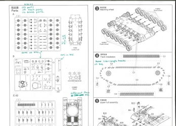 The kit parts are well molded with no significant sinkholes or flash. A few parts like the brush guards are too thick. I think some filler putty and sanding along seams will help. There are no etched brass parts, no cast resin parts, nor crew figures included. For a good display model, I would replace the turret lifting rings with copper wire. The