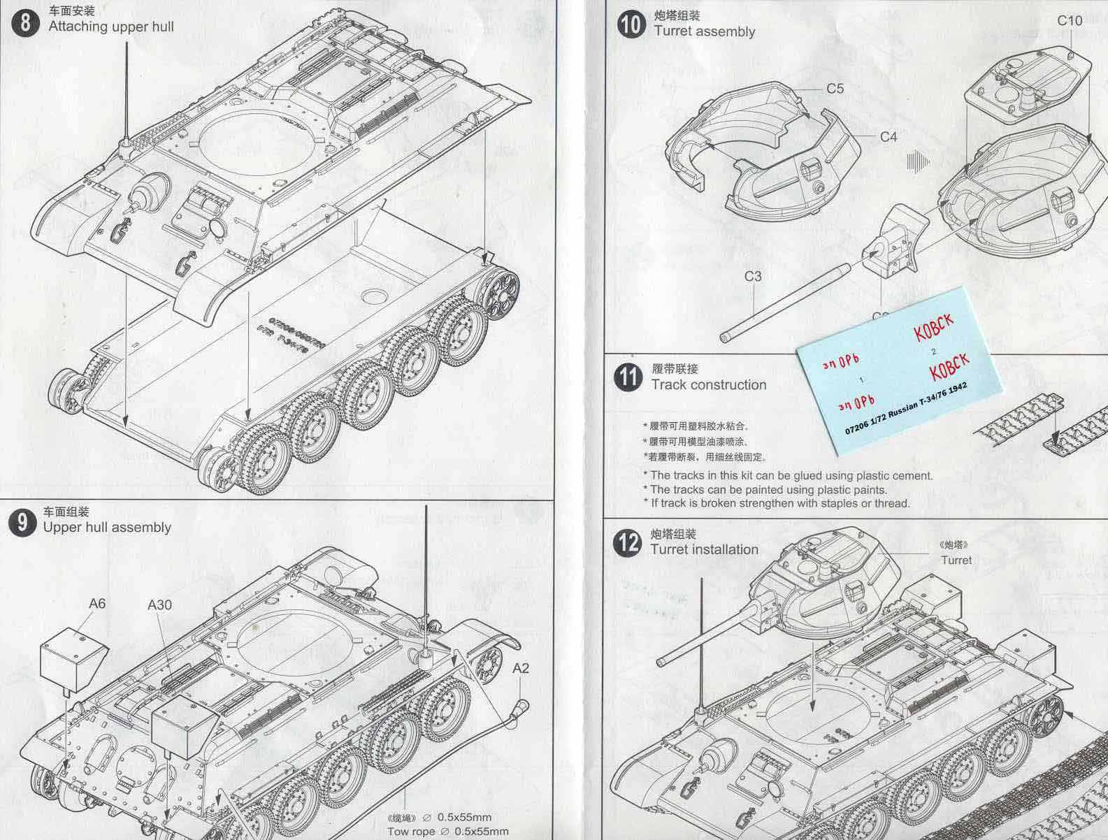 The scan of Sprue C shows the basic parts for the model 1942 T-34