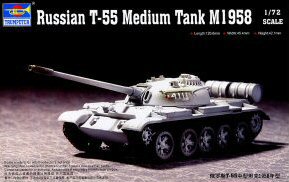 07281 T55A Kit No 07282 Both kits are essentially the same with just the turret sprue differing between them. Although these kits have already been released by both, ACE and PST, these are the first release by a main line manufacturer of these both historically and numerically important tanks. The T54 and the later T 55 have in one guise or another, been involved in many conflicts around the globe and there are many examples in museums around the world, the fact that so far all the producers of the kits are from countries who in one guise or another have either manufactured or used the T 54/55, you would have thought that maybe one of them could have got it right! So lets start by looking at the kits, both come set out on 4 sprues with the turret sprue differing between the kits, the hull bottom and top come as separate pieces, the hull tub comes with the suspension arms moulded in place and is very well done apart from the ejector pins hole on the underside of the suspension arms, these are really a minor problem as unless the vehicle is going to be displayed upside down, they are not going to be seen. The underside details differ slightly from the ACE kit but match the Tamiya kit, having never been underneath a T54/55 I can not say which is correct, but the details are in the correct position, only the recessed escape hatch should be flush with the bottom of the hull and not as it is depicted. The front has the correct cut away angles on the lower glacis, which also has no engineering attachment points for either the T-54 or the T-55, this is not incorrect, as I have seen plenty of pictures of both tanks like this, but I would say that it is more common to have them fitted than not, and although these are easy to replicate, given that they are a common feature, it would have been easier to include them on the kit or to do as Tamiya have done and supply the part separate, something that maybe they meant to but forgot? Moving to the rear plate, there are locating holes for the fuel drums, these are 4 largish square holes and are present on both kits, however only the T 55 kit provides the fuel drums, these are not present on the T 54 kit, meaning that the holes have to be filled, as the hull tub is marked inside as a T 54 model 1952 it seems odd that the drums are missing or that the holes werent flashed over, either way it is plausible for a T 54B to be fitted with the fuel drums. Moving to the upper hull, on both kits the inside is marked as a T 54 model 1952 and here lies the problem, more specifically in the engine deck, the kit features two rectangular access hatches immediately behind the turret, while this is correct for a T 54, it is incorrect for a T 55, where the right hand access hatch is a completely different shape, moving back the radiator openings lack the mesh screens seen on the real vehicles, the detail on the model is correct for what is underneath these screens, the radiator hatch itself has an odd kink on the rear edge, whereas it should be straight. Moving further back to the fan, we have a further oddity in that the protective grill is only shown on the left side and not on the right! Even if we presume that the cover has been lost for some reason, the armoured cover shown in place should have a small bulge in it to clear the fan itself. Moving to the front the glacis does have the correct bevelled edges, the drivers hatch is moulded shut and there is a noticeable absence of any electrical wiring for the lights. Also missing from the T 54 is the hull mounted MG, although in reality this was only a small hole to the right of the driver and difficult to replicate. The other oddity of this kit is the weld on the front of the glacis, with it being marked as a T 54 you would have thought that the weld line would have followed the T 54 but no the weld line follows that of a T 55 and runs straight across the lower edge whereas the T 54 should have a definite cut out for the interlocking plates of the lower and upper glacis plates. Apart from the glaring mistakes and omissions the hull is very nicely moulded with some nice details but missing any weld structure whatsoever. (Note, the T54 deck shown is the early layout for the radiator grills, later models switched to the T 55 style, however the engine access doors stayed the same) Next we move to the wheels, these come on two sprues both exactly the same, each contain 5 sets of road wheels, the idle and drive sprocket, plus tow hooks and lifting hooks for the turret as well as the hand rails and hull extensions for the turret. The sprocket and idler wheels are very nicely done, the road wheels would be the best if not for the fact that trumpeter had decided to show the mould lines for the rubber tyres, this would be heavy even in 1/35 scale but in 1/72 it is absolutely ridiculous and ruins a perfectly good wheel, of course it can all be removed, but it is a tedious job plus the fact that it needs to be done 20 times make the opportunity for making an error that much greater, given the fact that you want to preserve the delicate rims of the wheels. The plastic handholds for the turret are slightly oversized and could do with replacing. The next sprue contains the fuel tanks, exhaust, the various tool bins, oil tank, main gun, lights and lower turret. The fuel cells are nicely moulded and at least have a depiction of the locking mechanism for holding them in place, the tool bin has some nice detail to the top but is missing any of the characteristic side ribbing. The exhaust has the ribbed heat shield as part of the exhaust instead of being stood away from the exhaust, the main problem comes from the main gun and pig snout mantlet, whilst the main gun itself is nicely moulded and so is the mantlet, the whole assembly is missing the dust cover seen on every operational T 54/55, the only vehicles I have seen without it have either been burned out or in a museum, and I cant see many people wanting to depict it that way, the dus