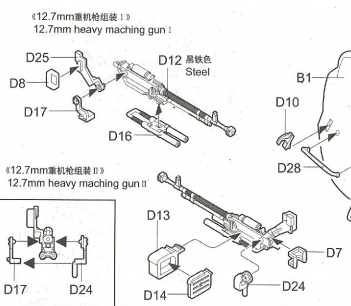 that 1/35 parts D17 and D24 extend backward. Notice also that D25