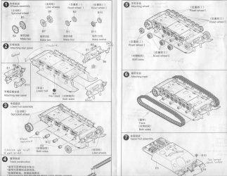 Trumpeter supplies a multi-step, exploded view assembly instructions that appear clear. I did not note any obvious errors. Step-3 does not clearly show the option of four or three return rollers (parts B9 and B12). On the actual lower hull side (the chassis) there are placement marks for either the two part B12, or a center placement mark for one center return roller part B12.