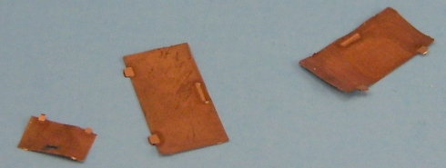 The photo-etched pieces are very poor and the worst part of the kit. The parts for the appliqué armour on the casemate guns and the vent louvers are quite useable since they employ the full thickness of the copper sheet, but it appears that the doors, visors an access panels were etched deeper into the copper in an attempt to create handles and hinges, resulting in parts that are too thin and warped.