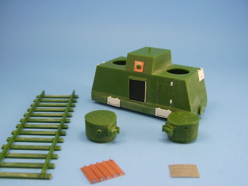 A short section of rail track is included. After sanding out the ejector pins marks I added some grain to the upper sides of the wood ties by scraping my hobby saw over the surface of the plastic.