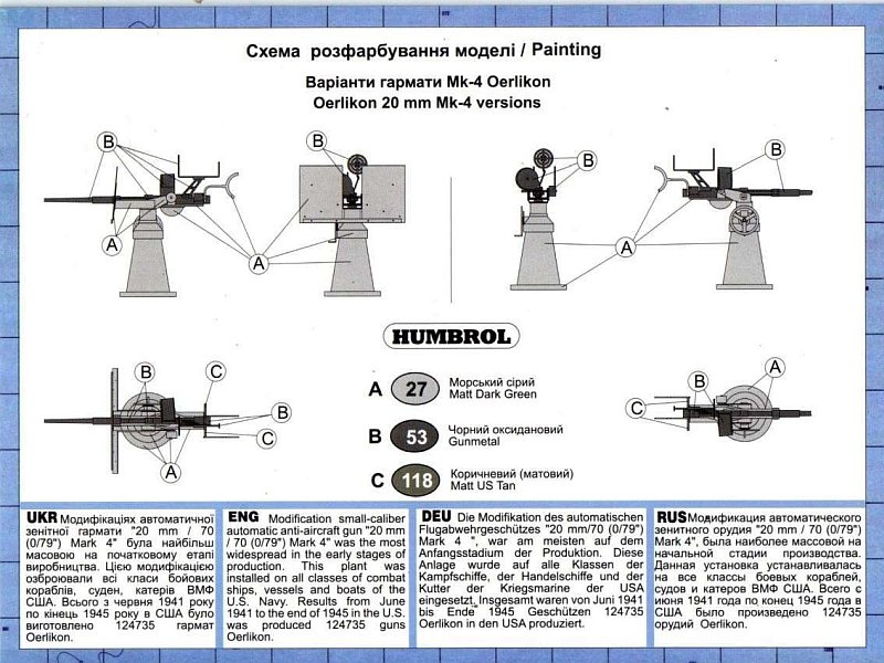 in colour on the rear of the box, giving Humbrol paint references. No decals are included, which isn't a surprise. According to reference [1], the model represents