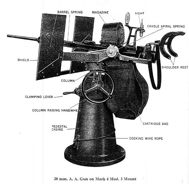 a 20mm A.A. gun on a Mk.4 Mod.3 mount with Mk.4 sights. (see below)