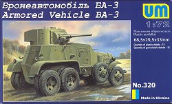 ![]() Never before available in plastic, UM has brought us this new series of pre- and early war armored cars. Although this is the earliest version UM produces (they also make a BA-6 and BA-10), this was the last of the three released. But it is the first of the three that I am reviewing . . . Make sense? For those of you familiar with this company, or its sister company Skif, you'll know what to expect with this kit. In fact, the turret is the same as the BT-5 turret from UM's earlier release, which in turn, is from the Skif T-26 Model 1933.
