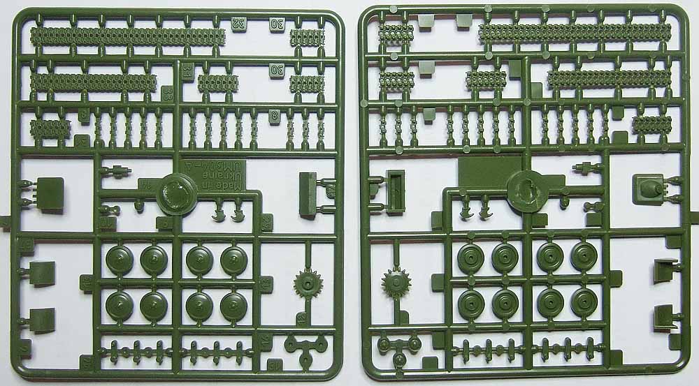 There are 6 sprues of typical green plastic. Two sprues with wheels