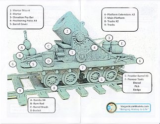 has the same photo with numbers & letters naming the parts. There is no decal sheet, which is to be expected.