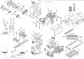 Note that the cabin assembly shown in the exploded view drawing doesn't exactly match the resin parts. Painting instructions