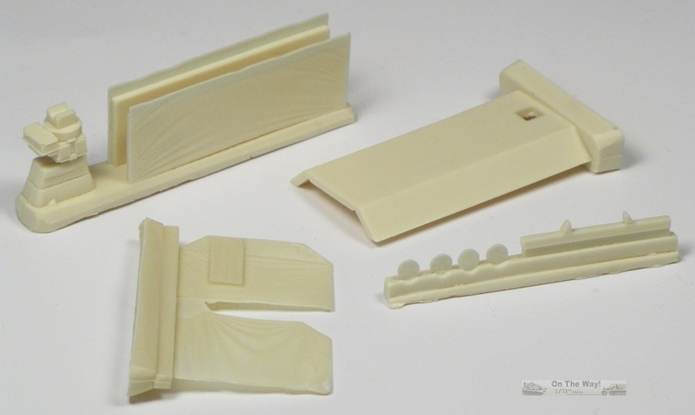 to accommodate the resin cabin. PE parts are provided to replace the plastic headlight guards.