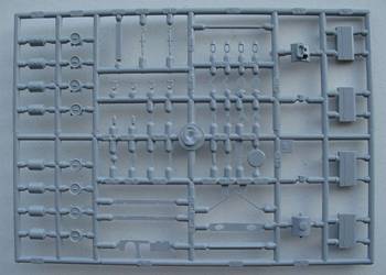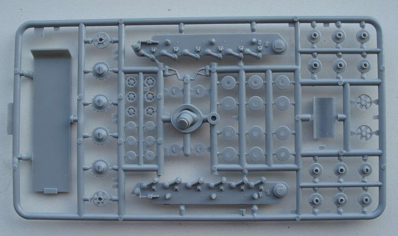 The box contains an instruction manual, complete plastic KV-1 kit from PST (minus turret), a resin fighting-compartment and 3 turned brass guns. There are no decals.