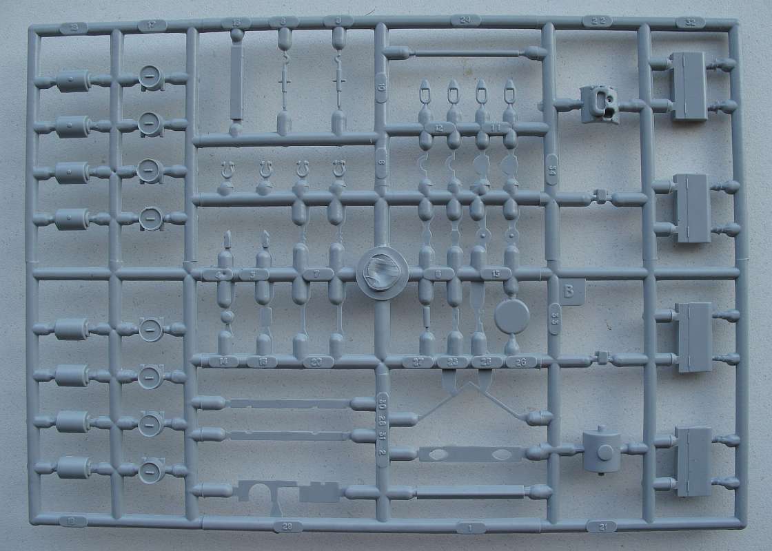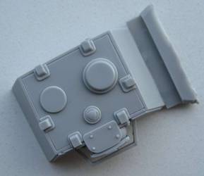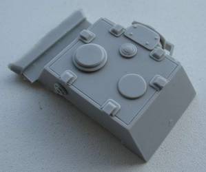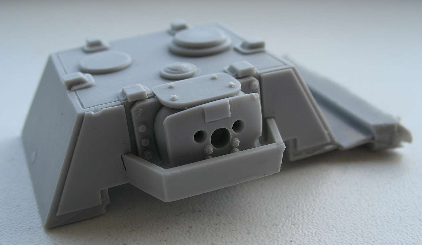 The resin fighting-compartment is very nice and sharply casted with closed hatches. The 3 brass barrels are nicely turned.