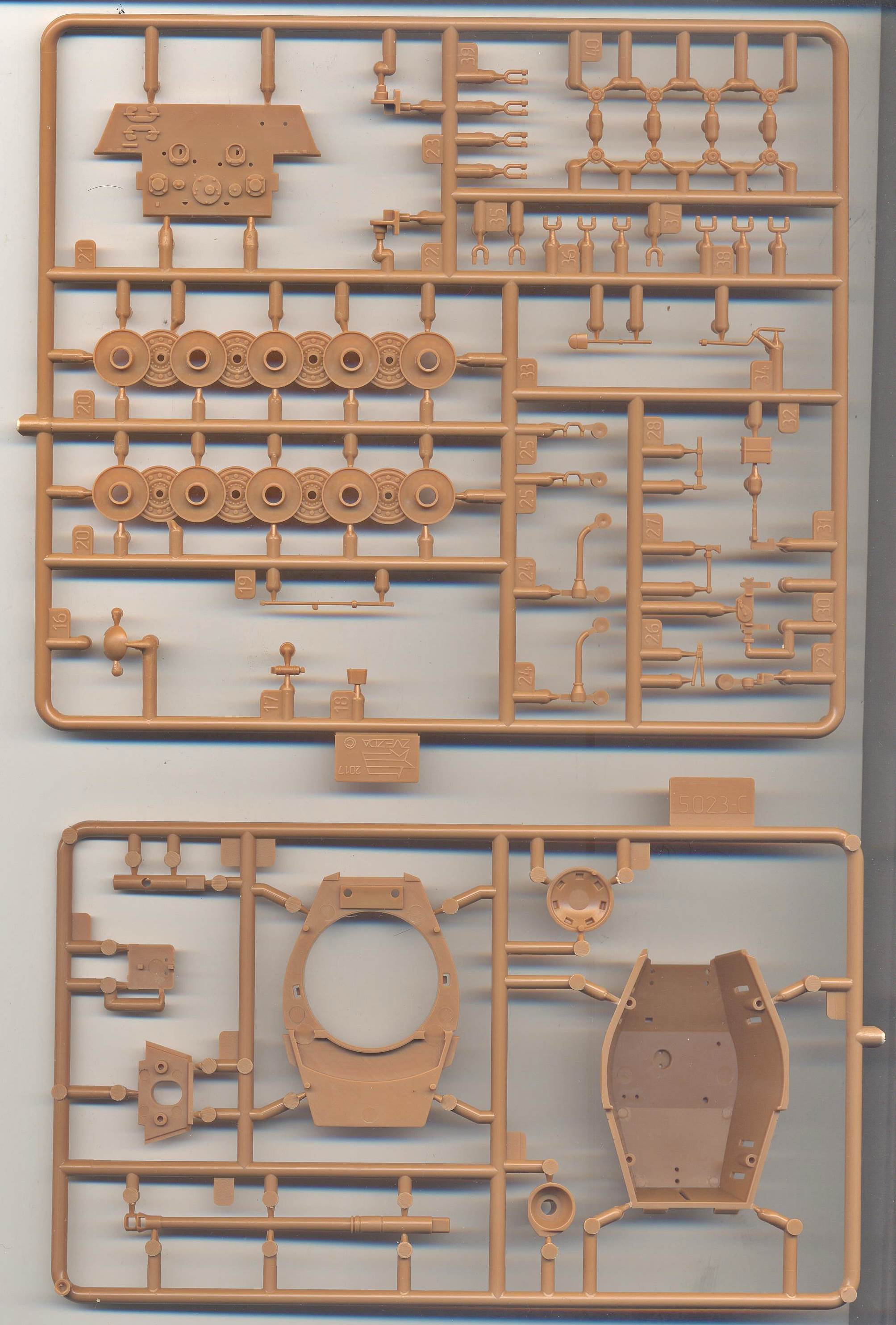 main sprue with upper hull and suspension. Detail is crisp, but those