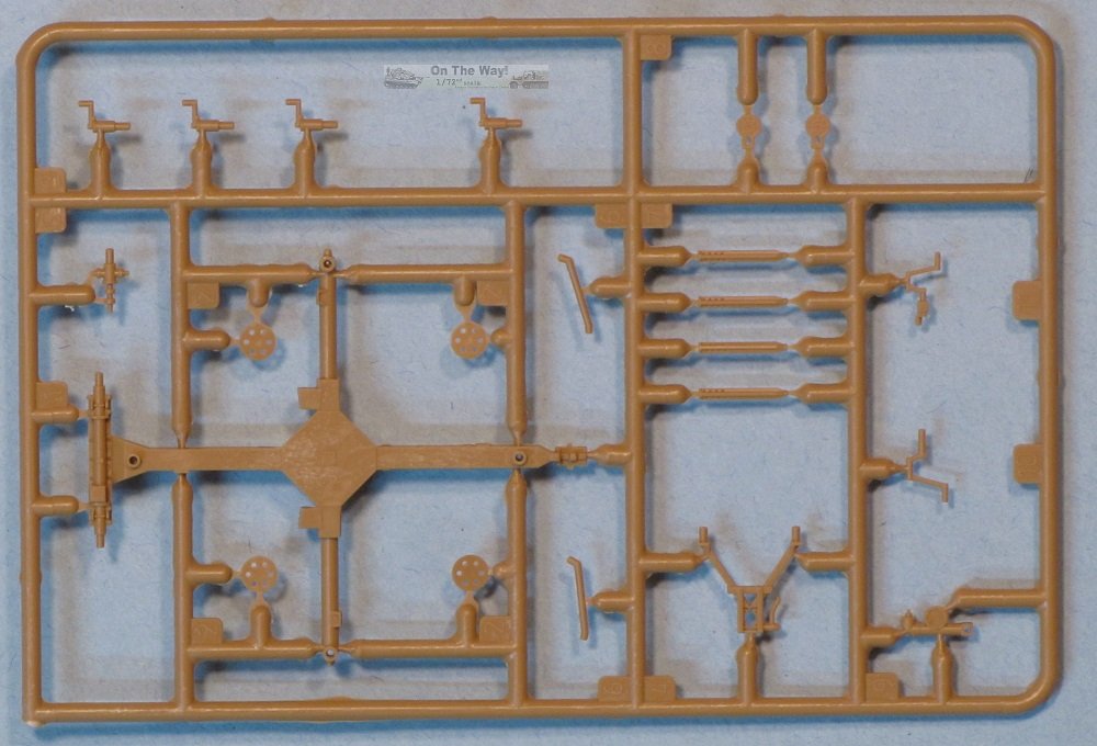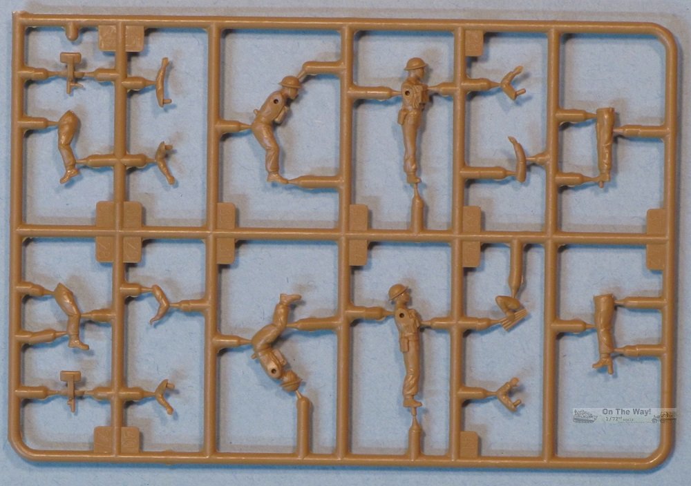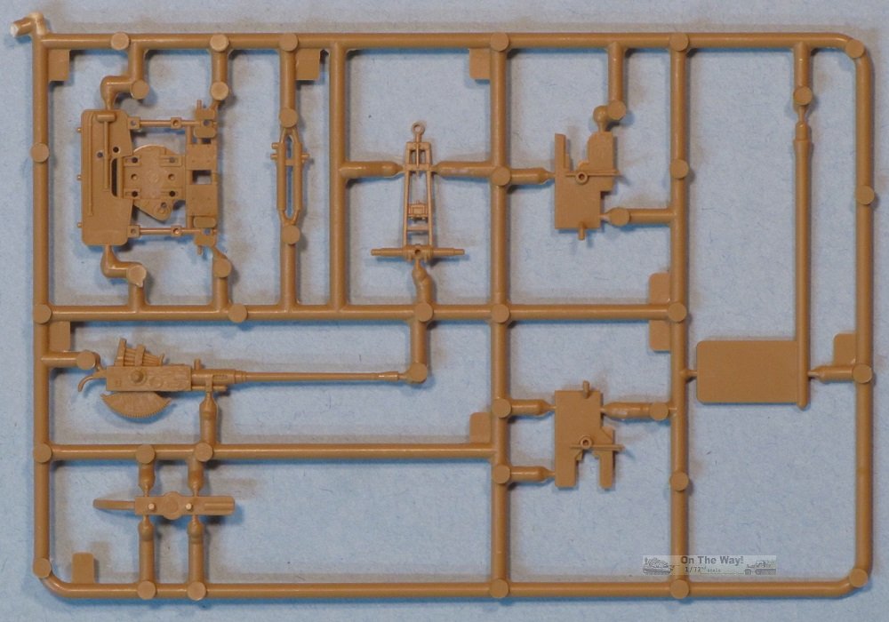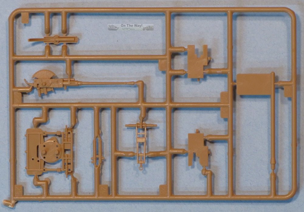 The small box contains 4 dark tan sprues with a total of 57 parts. Of those, 39 go into the gun, 16 make up the crew of 4,