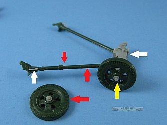 these is quite poor. The braces on the rear face of the shield were replaced with thin plastic strip that was given a slight twist to represent those found on the real gun. The UMmt kit's trails