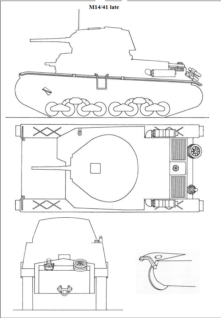 When it appeared in late 1941, the M14/41 was already obsolete, because the improvements introduced (notably, a more powerful diesel engine) could not compensate for the lack of modifications in other vital sectors (the armament remained unchanged). With another 700 vehicles built, the M14/41 substituted its older brother during the late 1941-late 1943 period.