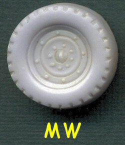 The MW wheel is the largest of the bunch, though still a hair too small in diameter. However, the wheel rim is far too large in diameter, which makes the tire appear to be too thin. The hub detail is a little flat, though overall not too bad. The worst aspect of this wheel is the tread, which is non-existent, considering the method of molding this wheel. Unless completely covered in mud, these wheels are pretty much worthless.