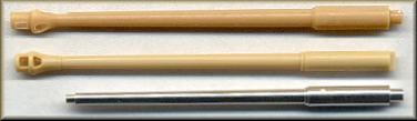 These two parts are equally well molded, but with the Revell part including a couple of items that the ESCI part lacks, such as the tow cleats, and jack block. The block is actually anachronistic, since overall, the Revell kit depicts a late example of the tank, but the jack and block were deleted from the later vehicles. The jack itself is included as a separate part in the Revell kit, and not included at all in the ESCI kit. The vehicle exhausts (not shown here) are also better in the Revell kit, as they mold the exhaust pipe and armored cover as separate parts, whereas ESCI molds them together, making them look like a solid block, which is obviously incorrect. Also notice that the ESCI part is a little bit taller than the Revell. How this will appear on the final model, I don't know. Main Gun Barrels
