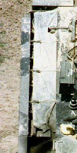 Revell's side armour fairs better, with it being the correct length and height. However, if fitted as per the instructions, the armour stands away from the hull, which it doesn't do on the real thing. Given the amount of time between the armour first being applied in 1991 and the release of the kit, it seems odd that Revell got it so wrong. However all is not lost, because the kit armour is also too thin and the thickness can be made up in the inner surface of the kit piece thereby bringing it flush to the hull. The CMSC side armour is worse, because there is no easy way of correcting it. Not only is it slightly too high, it is also too long. This is because of the way it is made. The individual armour panels are a standard size (apart from the 2 on the NBC compartment and the left hand front panel). On the CMSC armour the panels are different sizes (mostly too big) and as I have already stated, there is no easy way of correcting it. When adding the armour you also need to add mounting brackets to the front and to the left rear where the metal stowage bin is usually mounted (this is why it is sometimes seen mounted elsewhere on an uparmoured vehicle). Also DO NOT fit the right hand stowage basket as this is not fitted although the cover is retained. There is a large mounting bracket down this side. The exact shape of this bracket is unknown as the few pictures I have, have it covered either with a tarpaulin or just general clutter.