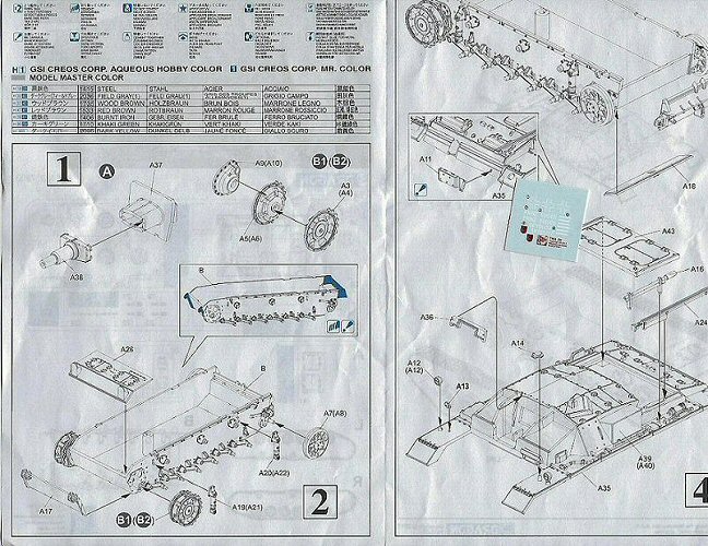 A, Ausf. B and Ausf. E kits. At upper left is assembly of the 7.5-cm