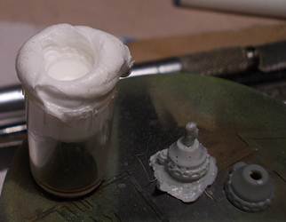 did). What do you do? Suppose now that you go for option 3. After a while you discover that the customer service the retailer/manufacturer pretends to offer is not what it is claimed to be. Then what ? Here is a simple solution, assuming you have access to a copy of the missing part. (This can be either because this part should be included n times in this kit (n > 1), but you only have it n-1 times, or because a friendly modeler trusts you to borrow his part.) In the example here, I am trying to make a copy of the sprocket mount of a Tiger I that was missing in a plastic kit from an unspecified Chinese manufacturer, but didn't send the replacement part that was promised after sending an email. I assumed that the left and right mount were (near) identical, so I decided to make a copy of the other mount. I first made a cast using regular DIY silicone. After a day or two I removed the plastic part (which should be fine after this ordeal). In the meantime I had taken a small jar, filled it with pieces of styrene sprue and Methylethylketone (MEK). After a day or two, the plastic has dissolved into a slimy paste, a bit like Mr Surfacer. (Adjust the amount of sprue to have a viscous mix.) Having removed the original part (quite important that you do), I now poured the mixture in the cast. After it has dried, the mixture will have shrunk substantially, so you will need to top up. (Do all this in well-ventilated area: MEK is highly toxic.) I let it dry overnight and removed the part. Depending on how much care you applied, you now have an exact copy in styrene, so easy to handle. As you can see, mine has some airbubbles, which - it seems - is unavoidable, but at least I have a new part. Some cleanup is needed on the open end of the cast. |