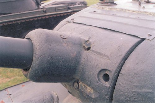 3. A good view of the Zis-S-53 gun mantlet belonging to the same T-34-85 as in Photo II above. Interesting is what appears too be a screw head near the crest of the mantlet's barrel sleeve. Barely visible at the top right is the loader's Mk 4 periscope.