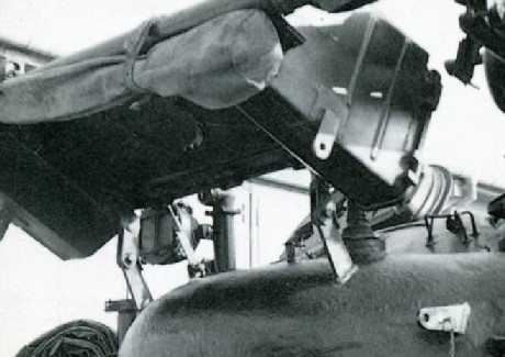 These clamps are in two parts, one half is welded to the turret and the other half to the bin, the two parts are then connected by a bolt, this is so that the turret bin can still be swung out of the way should access to the engine be required.