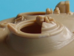 | Other changes that need to be made concerning the turret, centre around the fixtures and fittings. Firstly the commanders cupola, as can be seen in the photo below, there is some bolt detail around the rim that is missing from both the ACE and Revell kits.