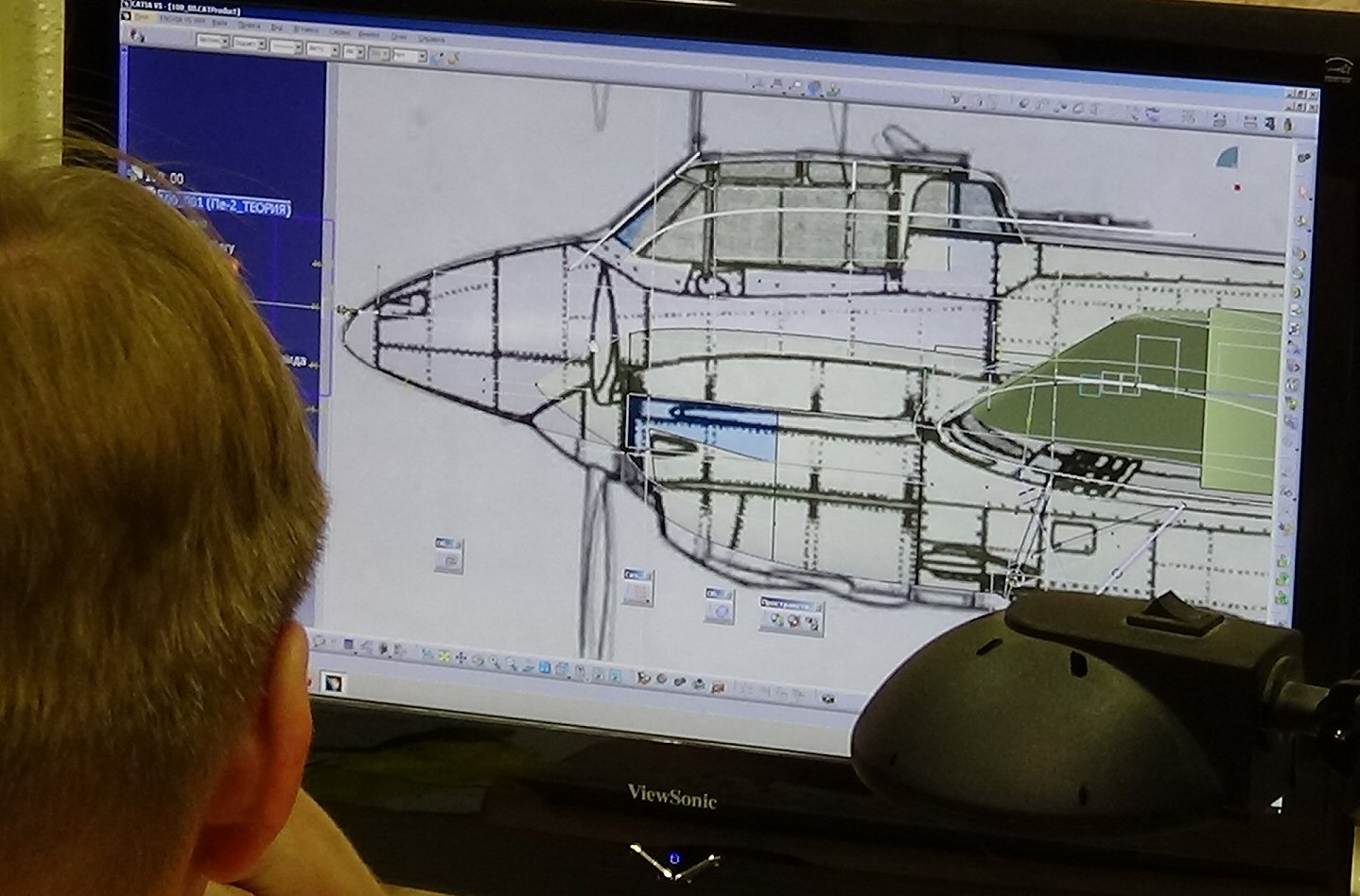 designer compares its Pe-2 1/48 3D-model with drawings taken from