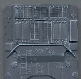 Highlights Highlighting a model involves two steps: the highlight coat of paint, and drybrushing. The highlight paint serves two purposes: it gets rid of unwanted wash stains, and it also weathers the vehicle. Use the same paint that you used for the base coat, but add some white to it. With the fine nozzle on the airbrush, carefully spray this lightened color onto all the open areas of the tank, like the glacis plate, turret roof, hatches, anywhere away from the nooks and crannies that have accumulated the wash. Pull the brush further away from the kit, and ever so lightly spray the lightened paint over the whole thing. This is difficult to explain, but it will make sense when you try it. The person who taught me this technique would buy two jars of the same color paint, and add a few drops of white to one of the jars, and use that jar for the highlights. I don't do this for two reasons. 1) I don't use enough paint to warrant two jars of each color. They'd go bad before I got around to using it all. 2) No matter how close the colors may look, it is possible to get colors that are ever so slightly different. Unless the jars came from the same batch of paint in the factory, this is always a risk. What I do is lighten the paint right in the airbrush cup. I add one or two drops of white and mix well. Don't add too much, or the colors won't match anymore, and don't add too little, or you won't be able to tell a difference from the base coat. Sometimes, you may want to repeat this process a couple of times, each time, lightening the paint a little more. The next step is the drybrush. The concept is to use some very light paint, either white, or a very lightened version of whatever the base color is on the tank. Get some on your brush, and then rub it off onto a rag or piece of paper, so that very little paint remains on the bristles of the brush and it is almost dry (hence the name "drybrushing"). Then lightly rub the brush bristles over all the bumps, edges, and high points on the kit, basically anything that would catch sunlight. The small amount of paint residue on the brush will highlight all the edges, making the model look more in scale. Again, I've been looking for the best method of doing this. Sometimes using acrylic paint works well, but other times, it seems that I get the best results by using an oil paint. Perhaps climate plays a part in this, and acrylics work best on very humid days. I'm not sure. Many armor builders I've met use pure white for drybrushing, but I think that tends to be too light. I instead use a very light gray. This is only for sharp edges, like along joints on the turret and hull edges, or any sharp, pointy protuberances. For rounded, softer, raised areas, like the mound-shape ventilator covers on Russian tanks, I use a very lightened shade of the camouflage color instead. You may want to repeat this step several times, using lighter shades each time.