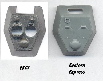 The ESCI kit has the obvious advantage of open hatches, but other than that, I like the EE turret better. The ventilator cover in particular, is very well done. It also has very fine vision slots on the turret sides, which the ESCI turret lacks, plus nice bolt details around the periscope. The EE commander's cupola is provided as a separate part, and is molded with a closed hatch. The detail on that part is very good. Although not shown, both of the guns and mantlets are very good.