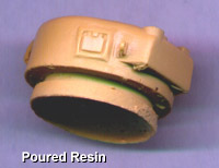 The advantage of poured resin kits is that they are much cheaper to produce. The disadvantage is that most of the large kit parts (turrets, hull) have very large blocks of resin on their bottom surfaces that require removal. The easiest way that I have found to remove these pour-blocks is to grind them off with a mototool (Dremel or equivalent). Keep in mind the dust warning above. If the part is sturdy enough, and the pour-block is laid out in such a way as to allow cutting it off with a hand saw, this produces much less dust. NEVER USE THE CIRCULAR SAW BIT ON A MOTOTOOL TO REMOVE THE BLOCKS! This is extremely difficult to control, due to the changing texture of the resin as it heats from the saw friction, and very dangerous. It's a good way to lose a finger tip or other important body parts. Be extremely careful when removing resin parts from their sprues as the resin is very fragile. Small parts especially can easily be broken. It's best to use a saw, or clippers to remove the small parts. Once all the resin parts have been removed from their sprues and pour-blocks, thoroughly wash them to remove any mold-release agents that might still be on the resin, and any resin dust from all the nooks and crannies. Use dish detergent and a toothbrush for best cleaning results. If you have warped resin parts, do not attempt to bend them back to shape without first heating the resin. Otherwise, you will break them. First heat the parts in hot (not boiling) water, with a hairdryer, or in an oven set on low (about 175 F). When heated through, bend the part back to shape and hold it there until it cools. Some resin parts are not as good as others, both from the perspective of the casting experience of the model maker, and also the quality of the resin itself. Many times your resin parts will have air bubbles on the surface or on the corners. These bubbles can be filled with either standard modeling putty, or gap-filling superglue. Some resin kits also have a very rough surface texture, which requires sanding with a fine-grit sandpaper. Many of the resin kits you get will come with broken parts from shipping. Just think of it as your kit having more parts than normal, and glue them back together. Most of the good resin companies pack their models in zip-lock bags, so any broken parts should still be with the kit.