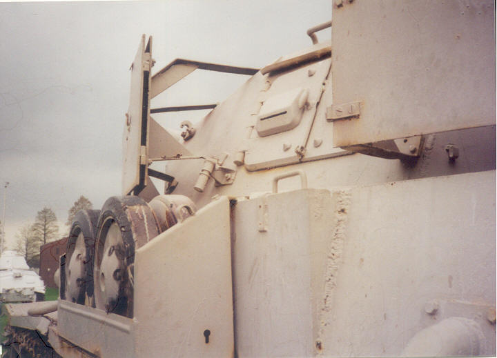 On the lower plate we have the vent on the brake maintenance hatch and the weld bead around its base. Next to it we see how the spare track is attached.
