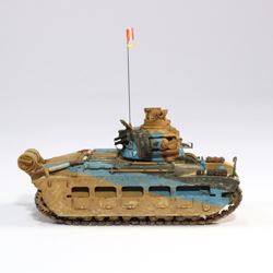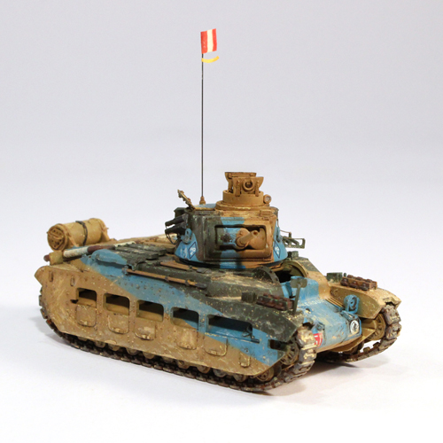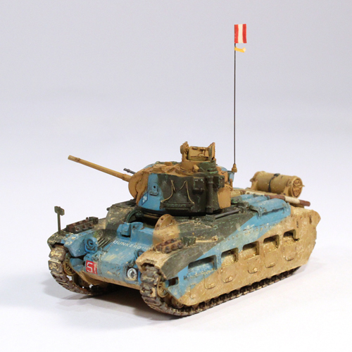 Italeri Matilda Mk.II in the WDF Caunter scheme (I know the whole debate about the blue, but I don’t care). I added a few things and painted with acrylics, weathered with oils and pigments. |