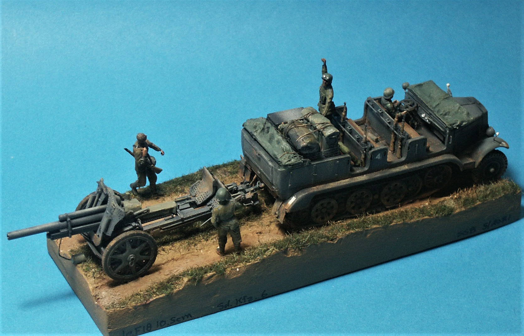 to 1/72 scale Sd.Kfz. 6 halftrack with First To Fight leFH 18 gun.