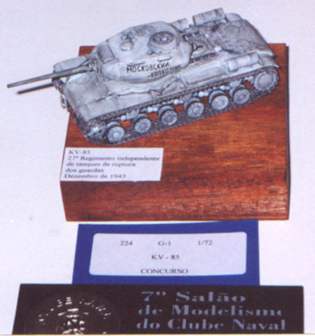 These photos come courtesy of Augusto Versiani from Rio de Janeiro. This was a model contest held in that city a couple of months ago, and Augusto took photos of several of the notable entries. Notice how they have the models in display cases; I've never seen that approach before, but then again, I've only been to about a dozen contests here in the U.S. Congatulations to Augusto for winning second place with his excellent KV-85.