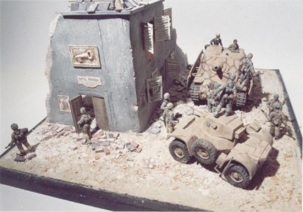 The vehicles are: Daimler Mk. II by Hasegawa and a Brummbar by ESCI.