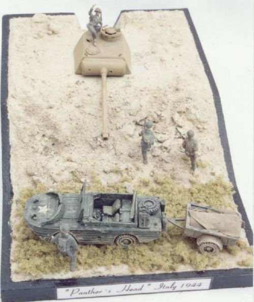 The vehicles are: Ford GPA by Czech Models, cargo trailer by Hasegawa and a Panther turret by ESCI.