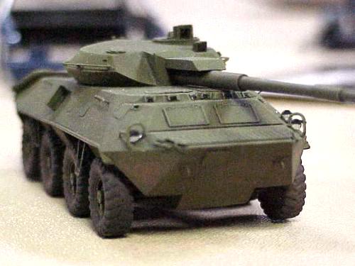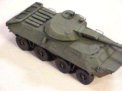 It is an experimental tank destroyer based on the BTR-70 made in the 1970's. It was armed with 85mm gun but didn't go to production beacause the armor penetration of the gun was not good enough. One was built and is currently residing in the back of the Kubinka tank Museum. The model is a conversion of the Planet models BTR-70. The turret and a gun are scratch built.