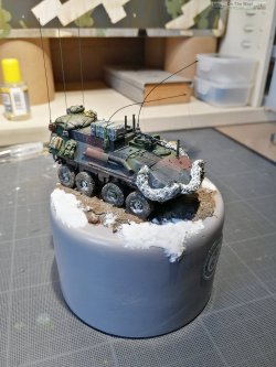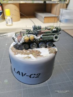 This is the LAV-C2 by Trumpeter. Wheels are from Armory model. Black Dog & T-Model provided the accessories and the antenna base is from emp3d.