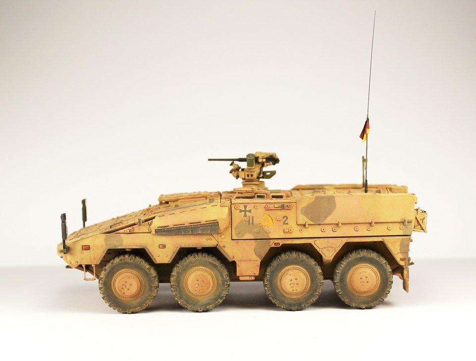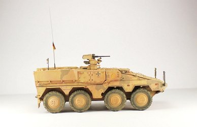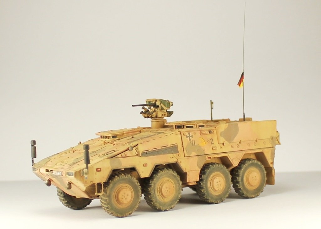 | This is the Revell Boxer GTK GTFZ A1 and is marked as an armored vehicle of the ISAF German contingent OP North in 2013. Wheels were the main problem area at the time of assembly, otherwise just a few small corrections were made. |