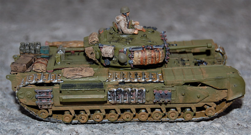 Hello, I'm a modeller from Turin, this is one of my late works a Churchill Mk IV of 34th Brigade 147 RAC/ October '44. The conversion is based on Hasegawa hull, with Italeri parts and Al.By turret.
