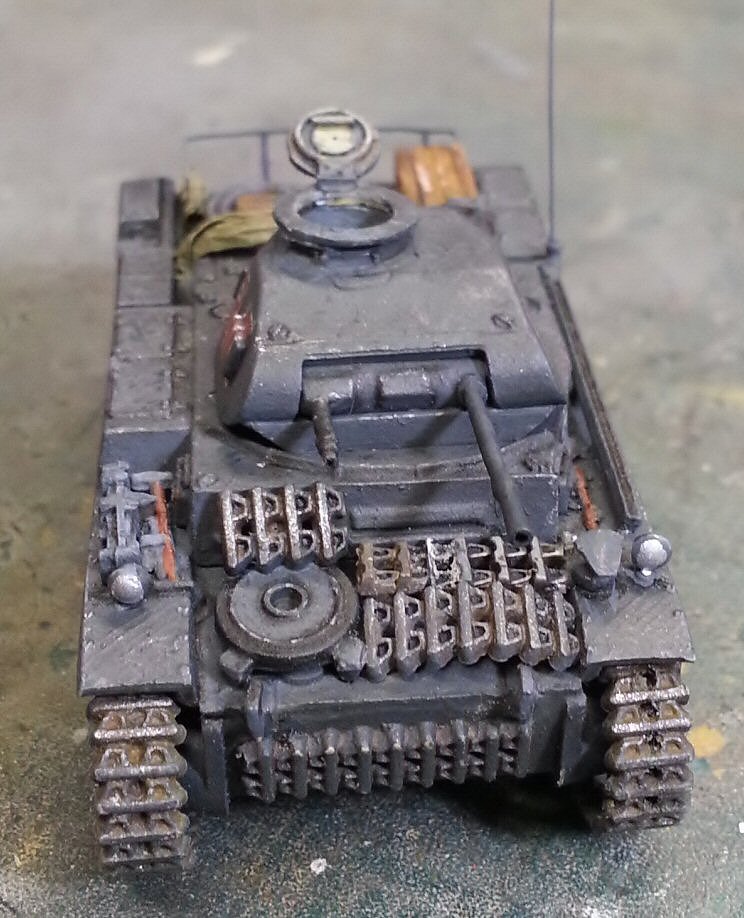 it. The paint is a hand mix of acrylic dark gray onto which I oil