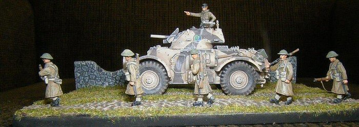 This is a Staghound Mk II of the 2nd New Zealand Armoured Division, Italy 1945 by RPM. The MMS commander figure had a huge right hand. I whittled it down as much as possible but it's still a bit big. Milicast make the walking infantry figures. I bought them for a "north west Europe 1945" diorama but it turned out their rifles are No1 mkIII SMLE's so they became Kiwis in Italy. The