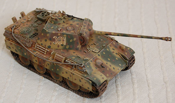 I would like to contribute my Dragon Panther G early. Sprayed freehand with Tamiya colors and the ambush dots freehand with brush and Tamiya colors. Drybrushed with Tamiya make up set.